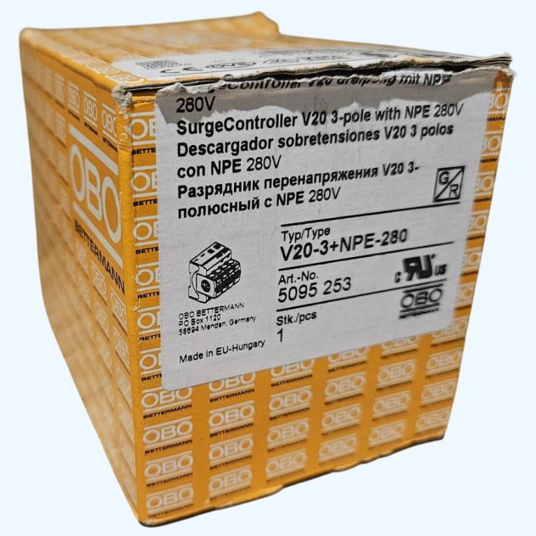 Chống sét lan truyền OBO V20-3+NPE-280 (5095253) của OBO Bettermann là thiết bị SPD Type 2 được thiết kế chuyên dụng để bảo vệ hệ thống điện 3 pha khỏi xung sét lan truyền và quá áp, đảm bảo an toàn cho thiết bị và hoạt động ổn định của công trình
