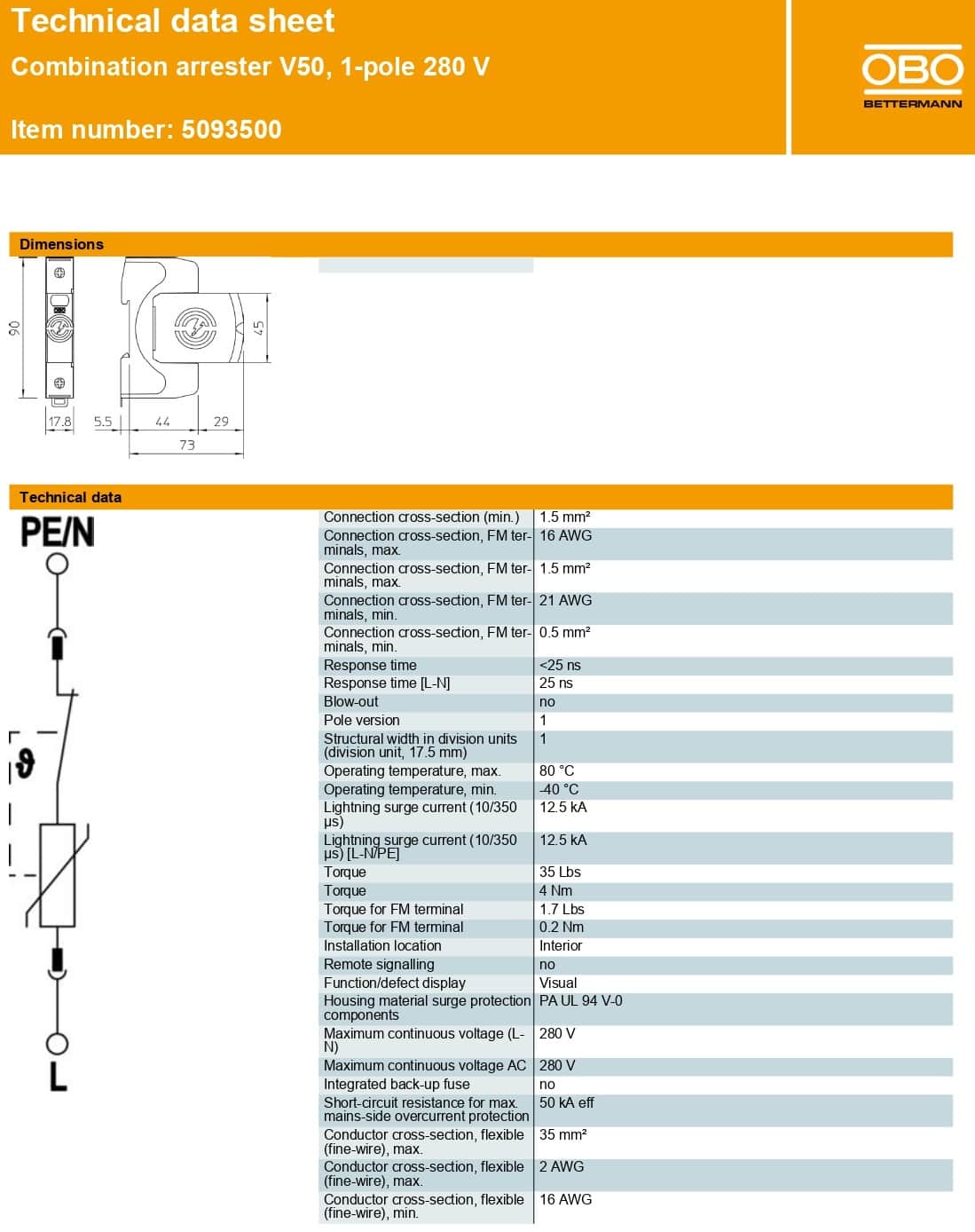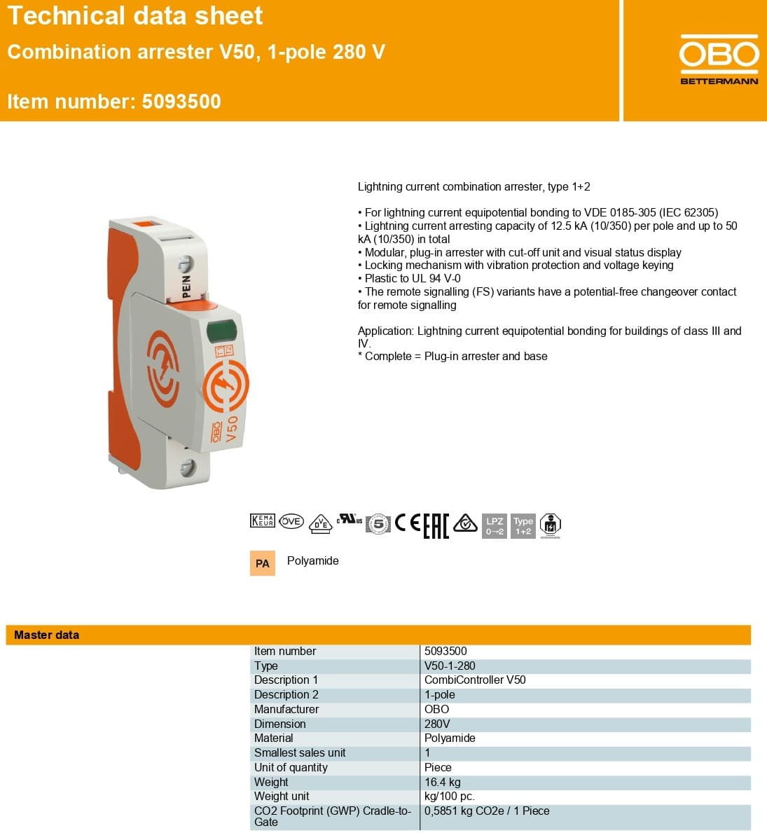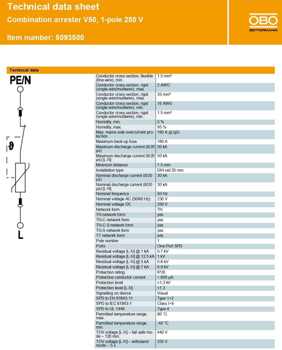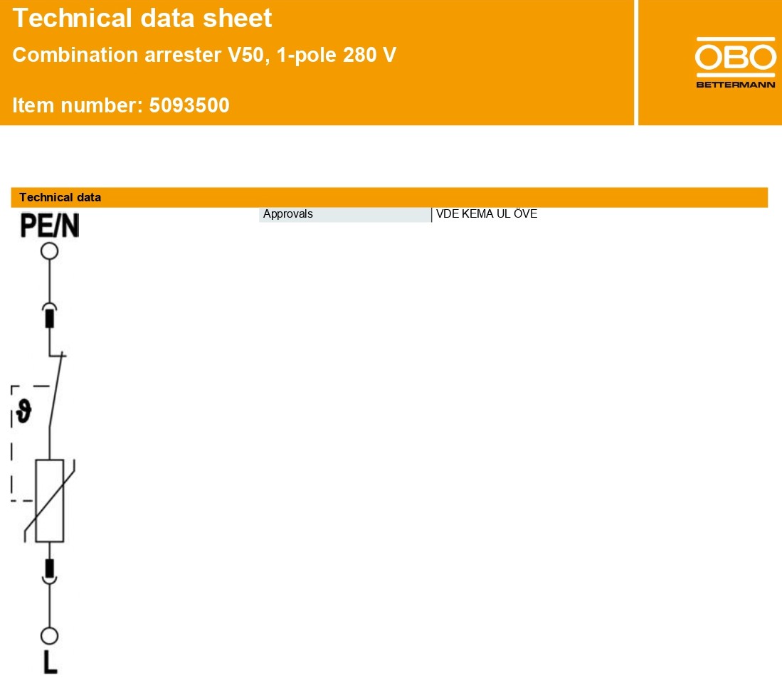 - Mã sản phẩm: 5093500 / Model: OBO V50-1-280