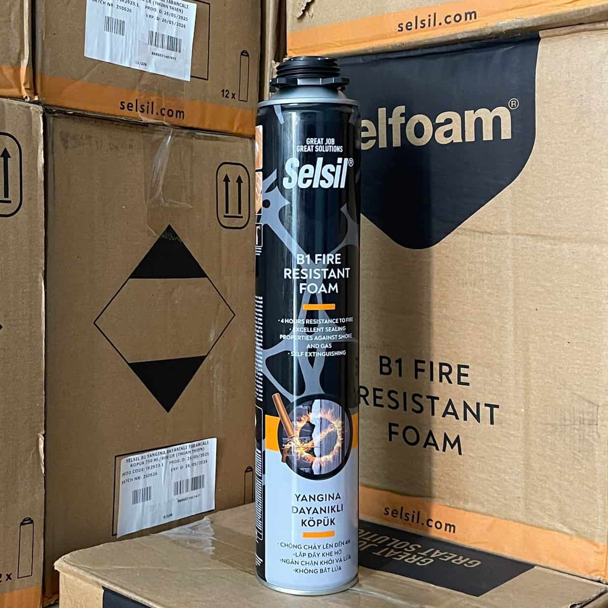 - Foam chống cháy Selfoam B1 là keo Polyurethane 1 thành phần tự trương nở và khô cứng trong điều kiện thường, có khả năng chống cháy / ngăn cháy cấp B1. Độ bám dính tuyệt vời với hầu hết các vật liệu xây dựng. Có tác dụng chống cháy, cách nhiệt, cách âm, chống thấm nước. Đặc biệt keo Selfoam B1 không có chứa khí H-CFC và CFC’s gây hiệu ứng nhà kính.