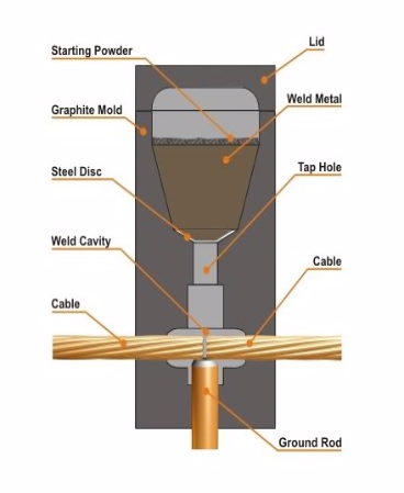 - Sử dụng để hàn hóa nhiệt cọc tiếp địa với dây cáp đồng trần, cáp đồng trần với cáp đồng trần, cáp đồng với băng đồng, băng đồng với băng đồng, ......